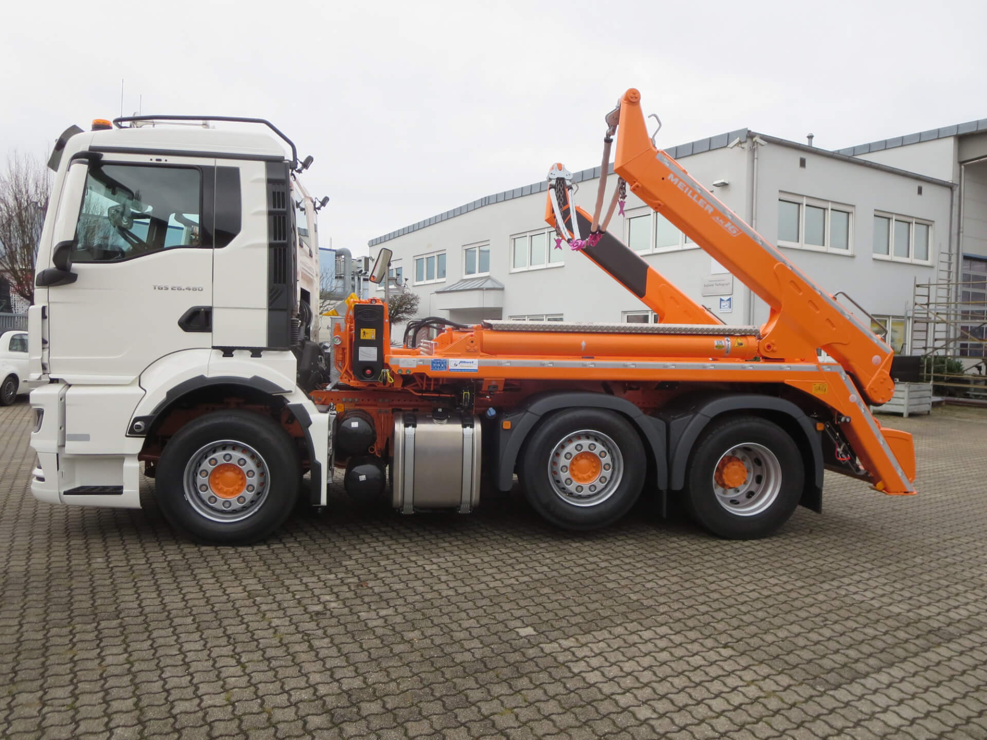 In Kombination mit einer FASSI Bavaria – Fahrzeugkonfiguration entsteht ein besonders leistungsstarker Containerwechsel-Aufbau – ideal für die Bau- oder Entsorgungsbranche geeignet!