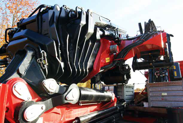 Da musste der Fahrzeugbauer schon alle Register ziehen.“ Wirklich nachdenklich macht diese Feststellung eigentlich nur so lange, bis der Truck Sekunden später um die Kurve rollt. Denn schon in Transportstellung hinterlässt der als Aufbau montierte, leuchtend rote Ladekran einen tiefen Eindruck. Ohne Zweifel! Dieser F2150 ist wahrlich ein brachialer Trümmer und punktet mit Leistungsdaten, die man bei einem Ladekran nicht erwarten würde. Immerhin stemmt das Topmodell der Marke ein Hubmoment von bis zu 1012 Kilonewtonmetern dem Himmel entgegen.