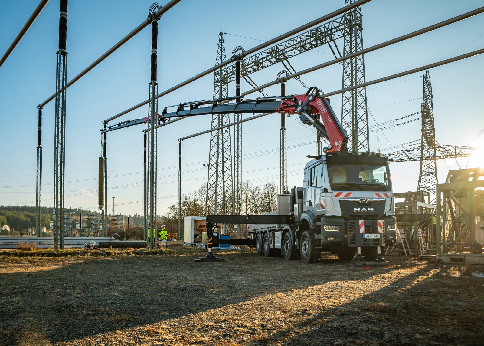 Für TenneT sind diese dringend notwendigen Bauvorhaben unumgänglich. Um diese Aufgaben lösen zu können, kommt unter anderem modernste Krantechnik zum Einsatz. Für Baustellen dieser Art ist leistungsfähige und präzise Hebetechnik erforderlich. Der FASSI Ladekran F820RA.2.26, wurde auf einem MAN TGS 35.510 Lkw montiert.