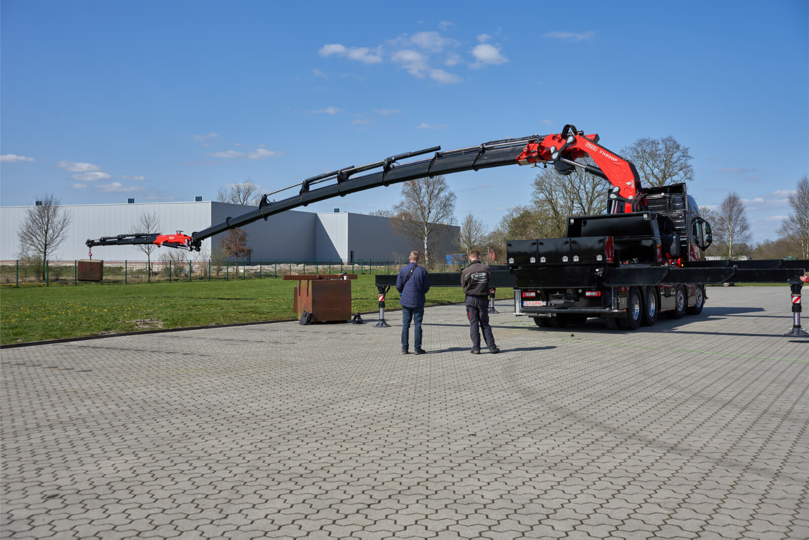 Als erfahrener Fahrzeugbauer und Fassi-Händler bietet das Unternehmen alles aus einer Hand. Damit gibt es für Servicearbeiten nur einen Ansprechpartner. Schnell war daher ein leistungsstarkes Kranfahrzeug zusammengestellt, welches alle Vorstellungen von Jacek Kurowski erfüllt. Es wurde ein 4achser Volvo Lkw mit Fassi F1450 HXP TECHNO.