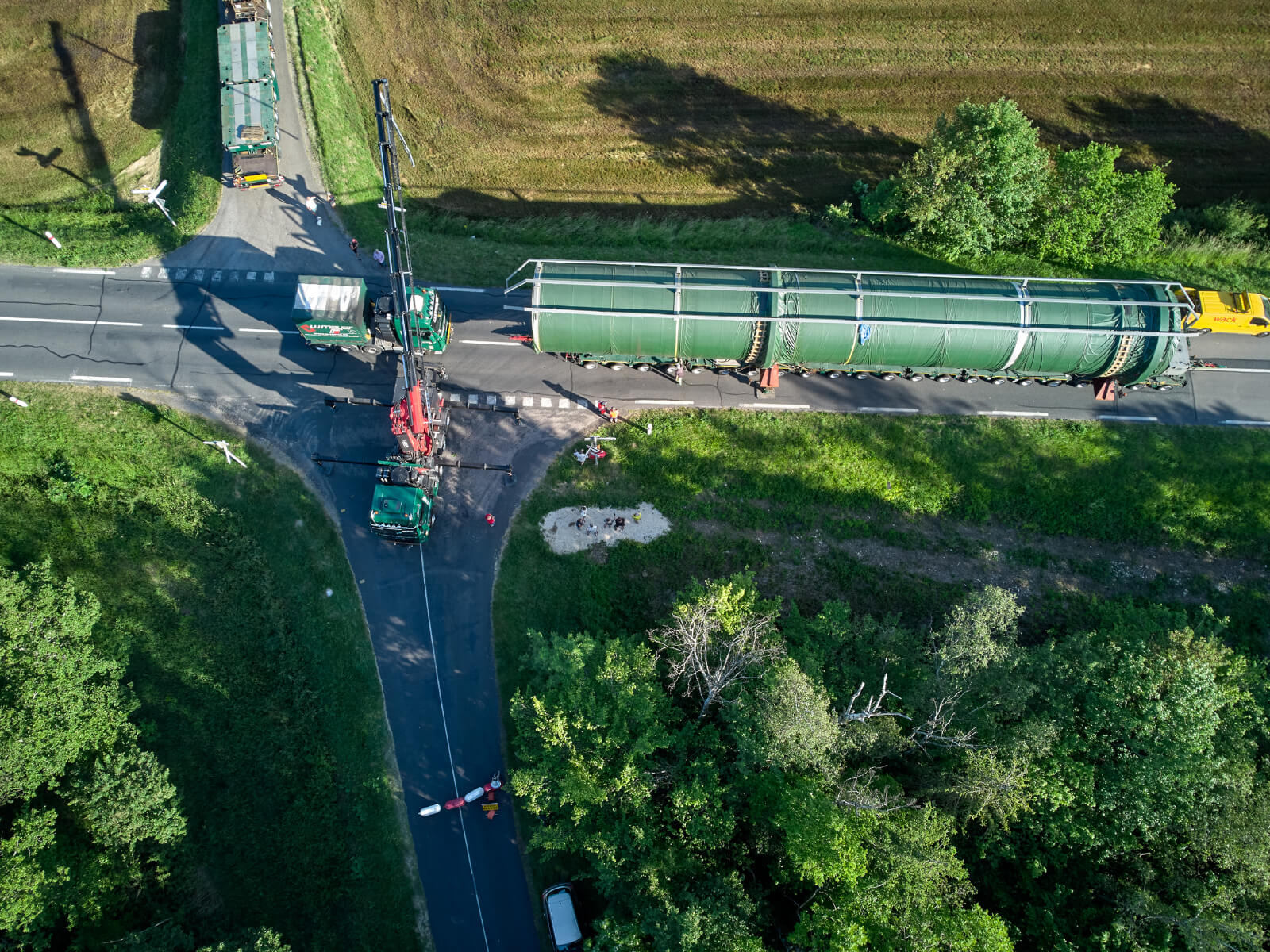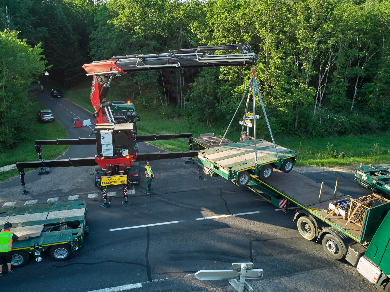 Bei einem Transport eines 340 Tonnen Kessels durch Frankreich, ersetzte der Kranaufbau den sonst benötigten Ballast auf dem LKW: Eigentlich reichten die 22 Achslinien des Plattformwagens für den Transport aus. Die Genehmigung der französischen Behörde forderte jedoch für die Überquerung einer Brücke über eine zweispurige Eisenbahnstrecke bei Mehoncourt, südlich von Nancy gelegen, eine Erweiterung der Transporteinheit auf 28 Achslinien. Der FASSI Kran nahm die beiden zusätzlichen 3Achser Module vom Auflieger des Begleitfahrzeuges und half bei der Montage der Transporteinheit, damit diese problemlos angebaut werden konnten. Nach der Überquerung der Brücke wurden die beiden 3Achser Module wieder entfernt, damit der Transport wieder kompakter für Kurvenfahrten auf der