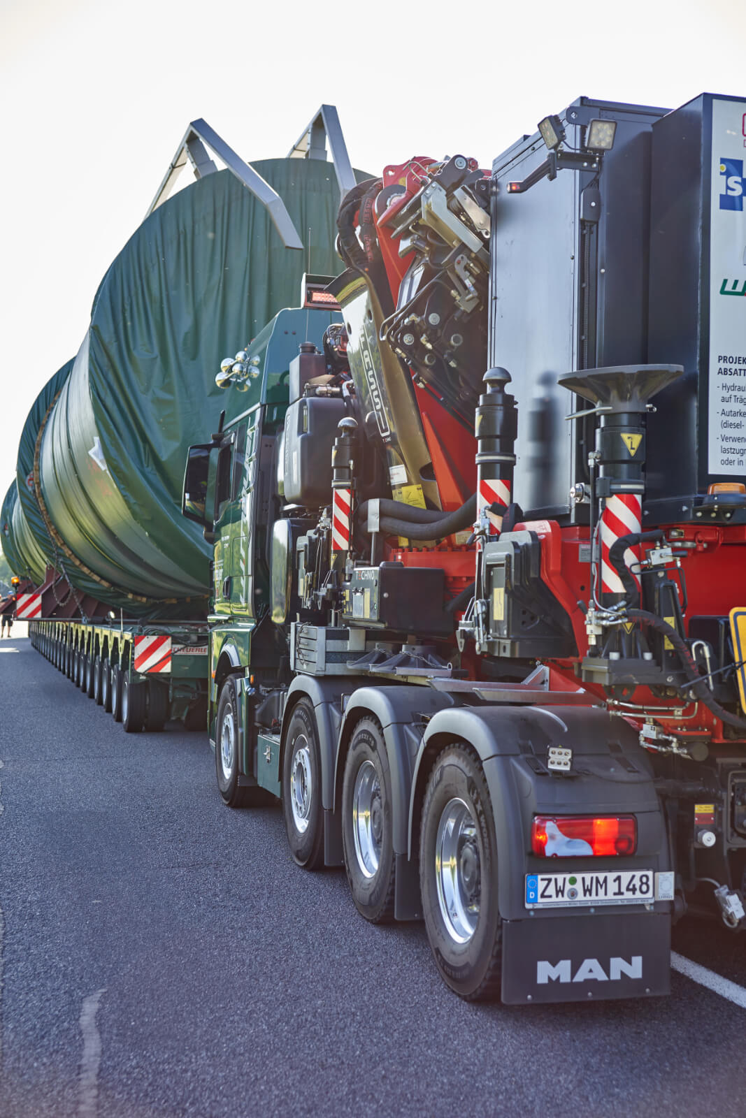 Das in Zweibrücken ansässige Unternehmen setzt den Lkw als Zug- oder Schubfahrzeug bei Schwertransporten oder ohne Kranaufbau als 4Achs-Sattelzugmaschine ein.
