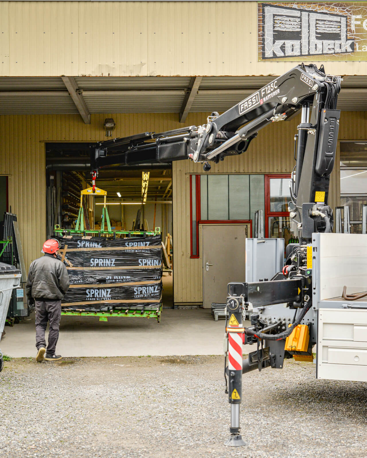 Überzeugt habe schließlich die Hubleistung des FASSI F125AC mit Kniehebel am Knickarm. Auf einer Ausladelänge von 8,5 m hebe der F125AC noch über 1.100 kg und auch im Nahbereich weise der Kran extreme Hubkraft auf, so der Sprinz-Fuhrpark-Logistikleiter.
